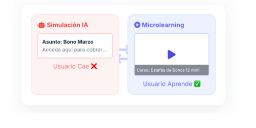 No castigamos, educamos. Si un usuario cae en la trampa, recibe automáticamente una micro-cápsula educativa de 2 minutos explicando el error. Refuerzo positivo inmediato en el "Teachable Moment".